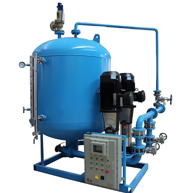 Это устройство в основном состоит из резервуара для сбора конденсата, водяного насоса, системы управления и других частей. Конденсат, образующийся после прохождения пара через оборудование, использующее тепло, поступает в резервуар для сбора конденсата под действием собственного веса или остаточного давления пара. В резервуаре для сбора установлен датчик уровня жидкости для контроля уровня воды в резервуаре в режиме реального времени. Когда уровень воды достигает установленного начального уровня, система управления автоматически запускает водяной насос. Водяной насос транспортирует конденсат из резервуара для сбора в назначенное место переработки, например, в резервуар питательной воды котла. В процессе транспортировки устройство автоматически регулирует рабочие параметры водяного насоса в соответствии с изменениями давления и расхода в трубопроводе, чтобы обеспечить стабильную транспортировку конденсата. В то же время устройство также оснащено функциональными модулями, такими как модули дезактивации и дегазации, которые могут эффективно удалять примеси и неконденсирующиеся газы из конденсата, обеспечивая качество оборотной воды.